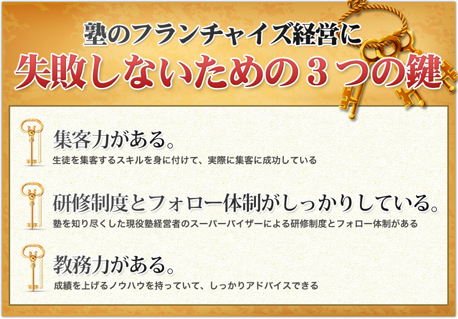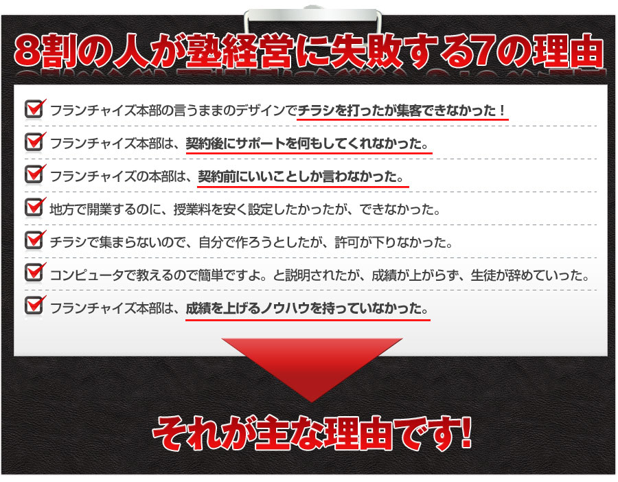 集客ノウハウのないフランチャイズ塾は選ばないで下さい。