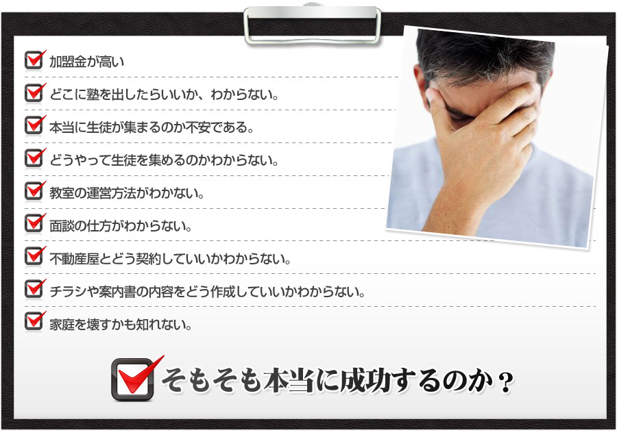 塾を開業したものの生徒が集まらないフランチャイズがほとんでです。