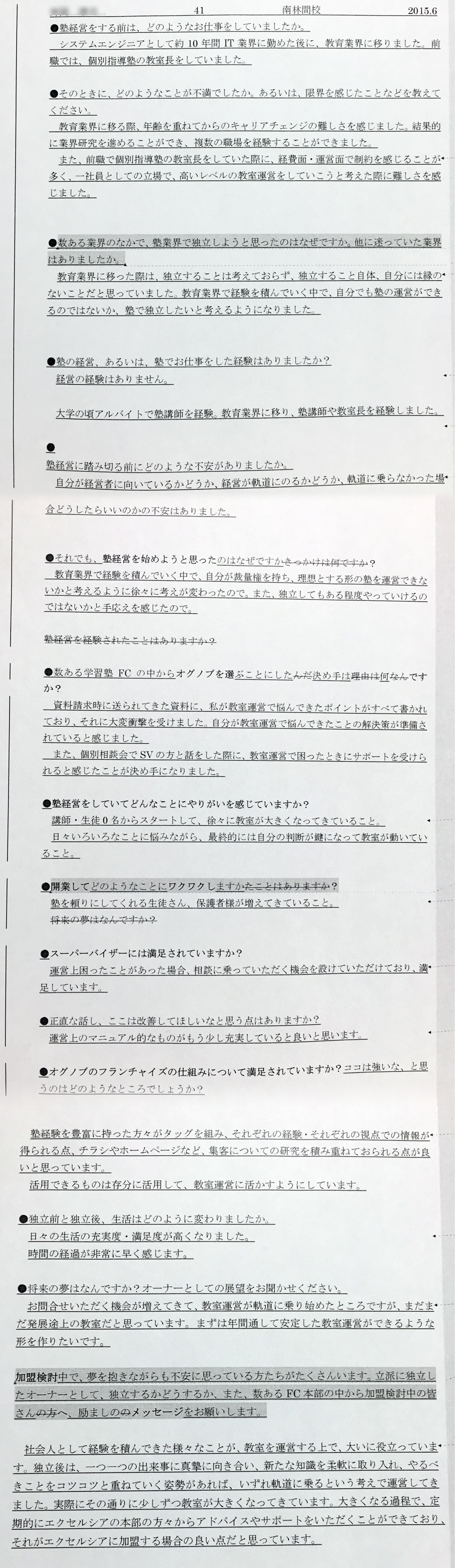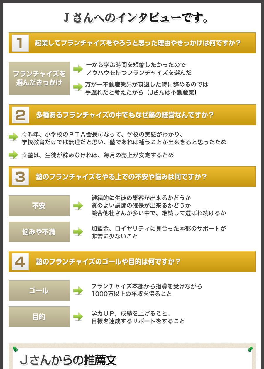 実際の現場の状況、フランチャイズ塾の実態などをお聞かせ下さい。