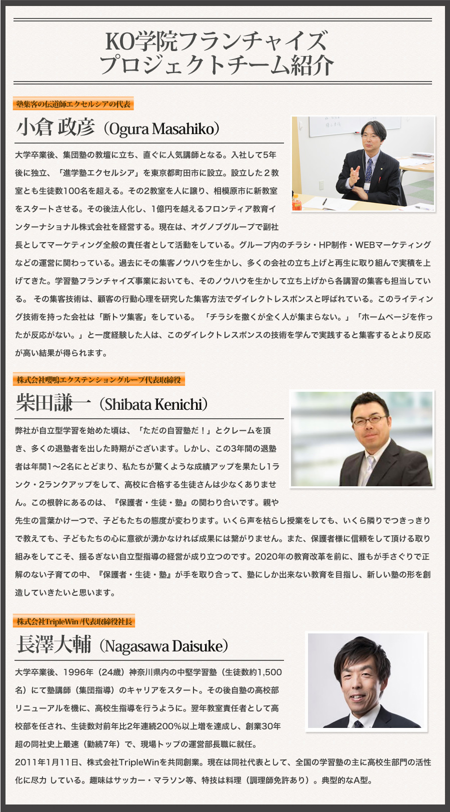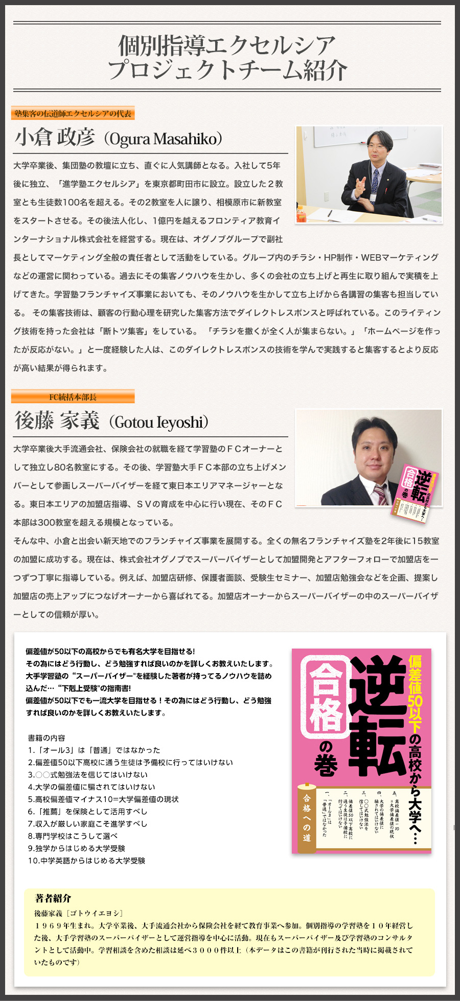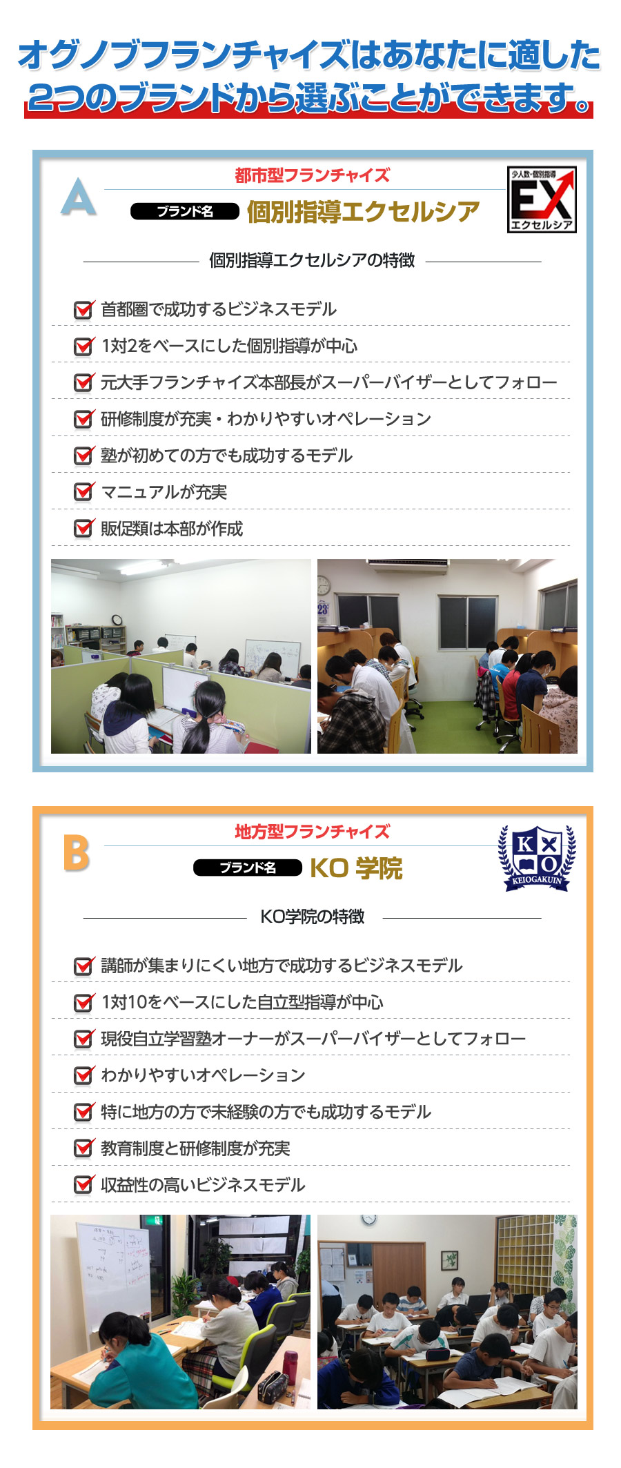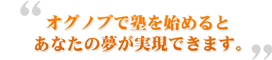 当塾は、生徒集めの実績、塾運営のノウハウ、本物のサポート体制を持つ株式会社オグノブさんを強く推薦します。