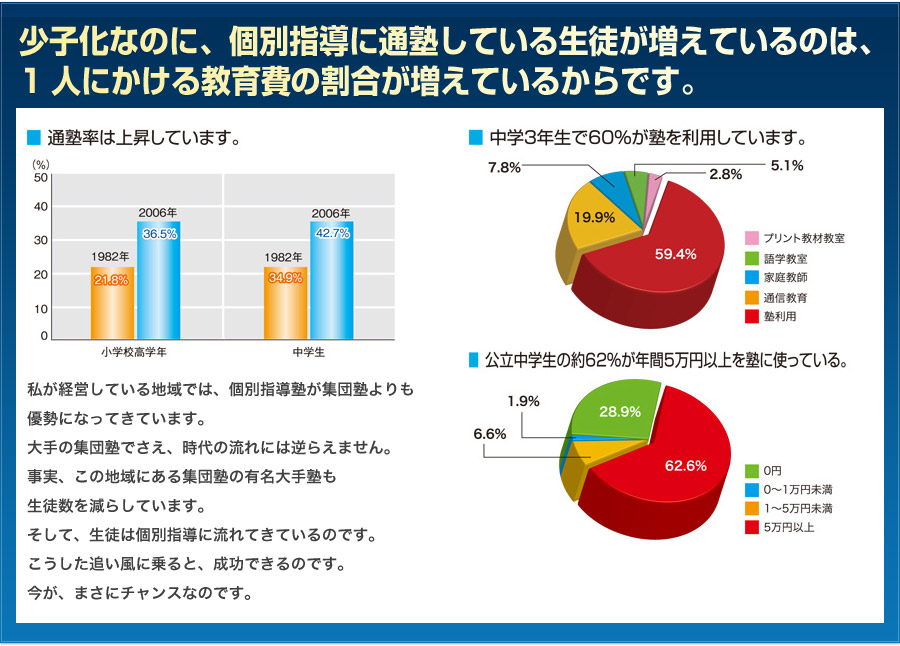 業界の先行きに不安を感じ、一年前からフライチャイズの塾をやっています。